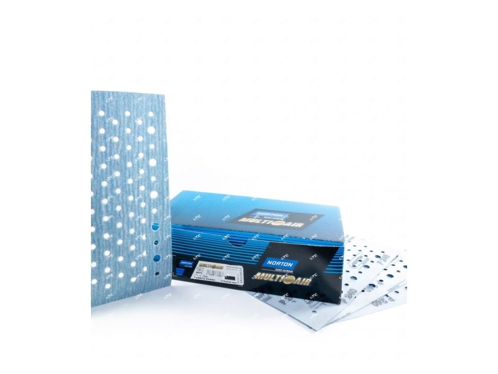 Brúsne hárky s rozmerom 115x230 mm, s perforáciou Multi-Air, vhodná na rýchle brúsenie hrubých vrstiev materiálu. Hrubosť/zrnitosť si vyberte vo variantách produktu.