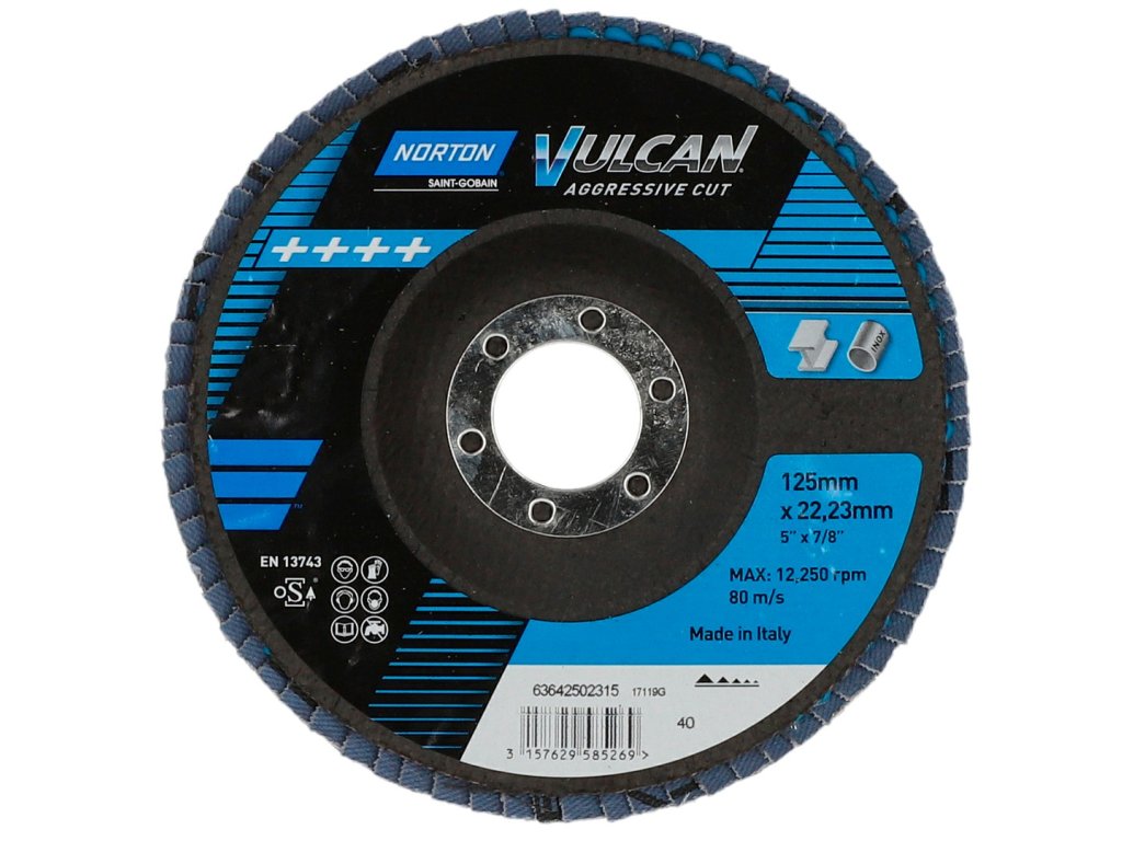 Brúsny kotúč Vulcan Z40, 125mm, je vhodný na silné a rýchle brúsenie väčších plôch, odstránenie zvarov alebo hrán na oceli a inom kove. Robustná konštrukcia a ostré keramické zrná predlžujú výdrž kotúča aj pri intenzívnej práci.